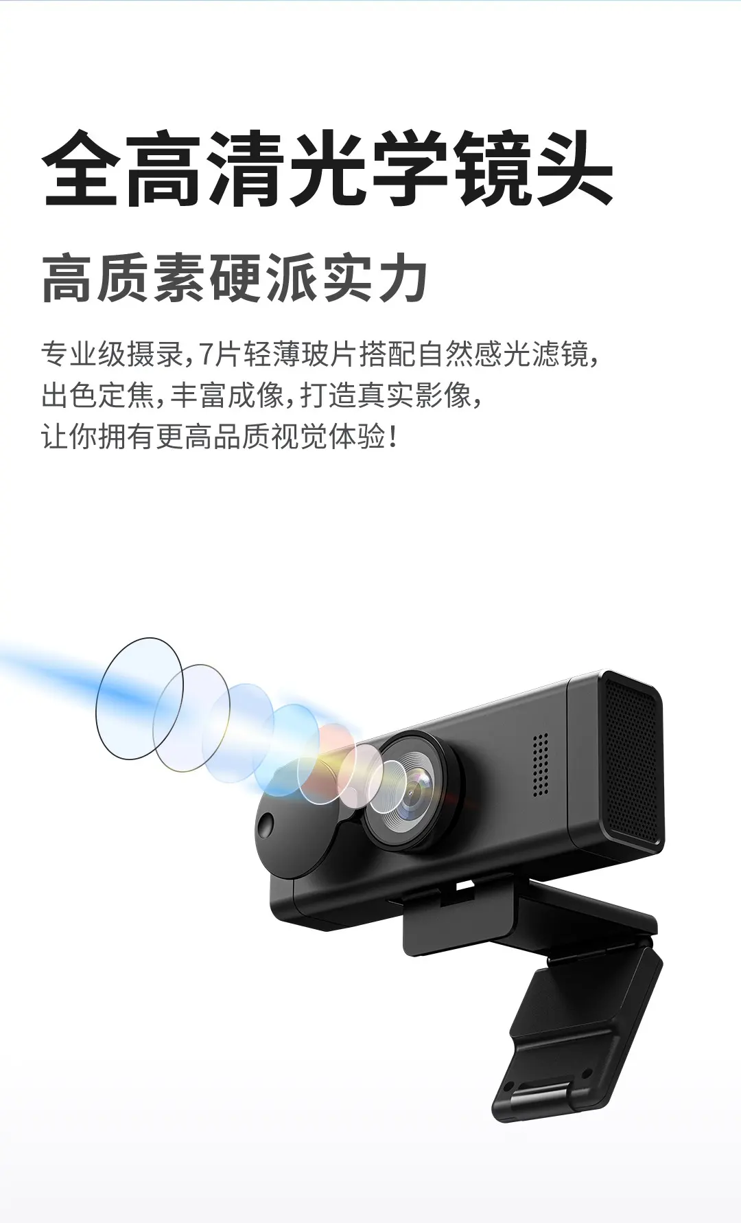 搭載雙專業級商務麥克風,800W有效像素,擁有鏡頭遮蓋設計,全高清光學鏡頭,擁有鏡頭遮蓋設計