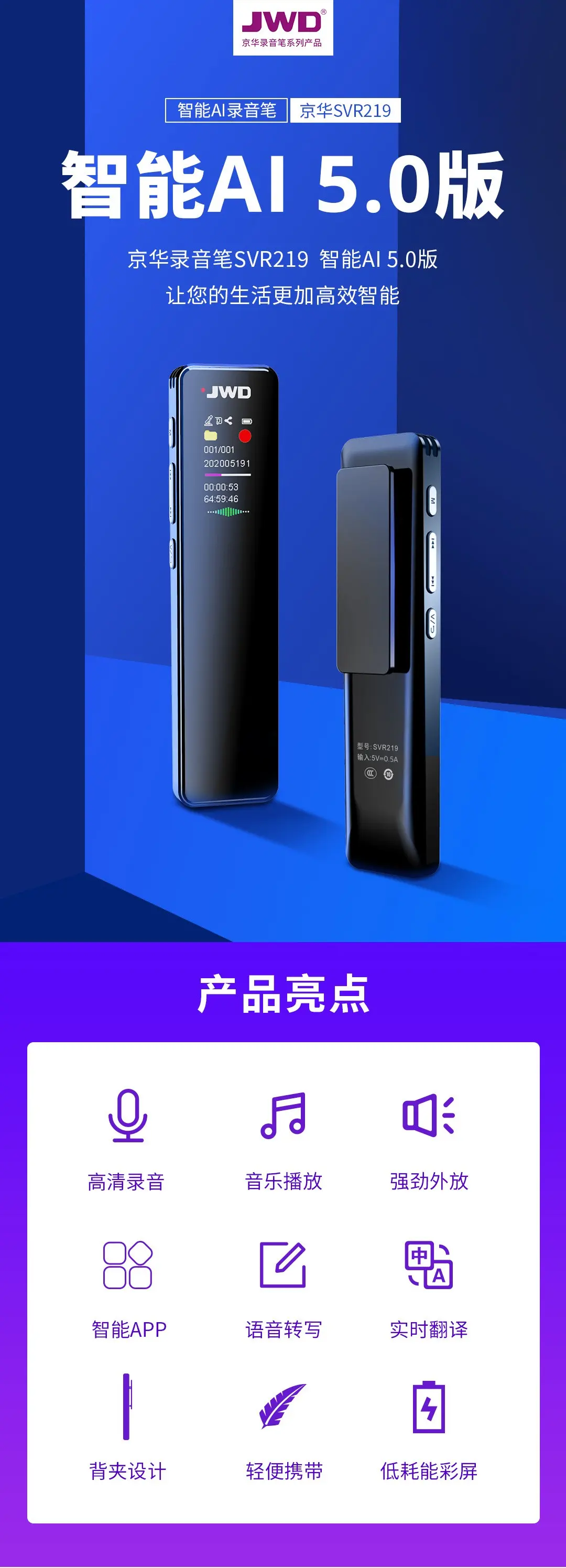 AI5.0錄音筆 SVR219