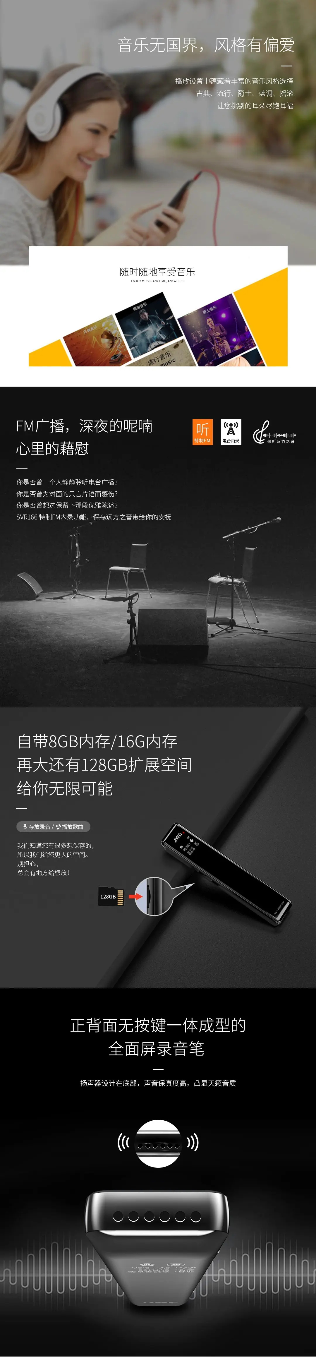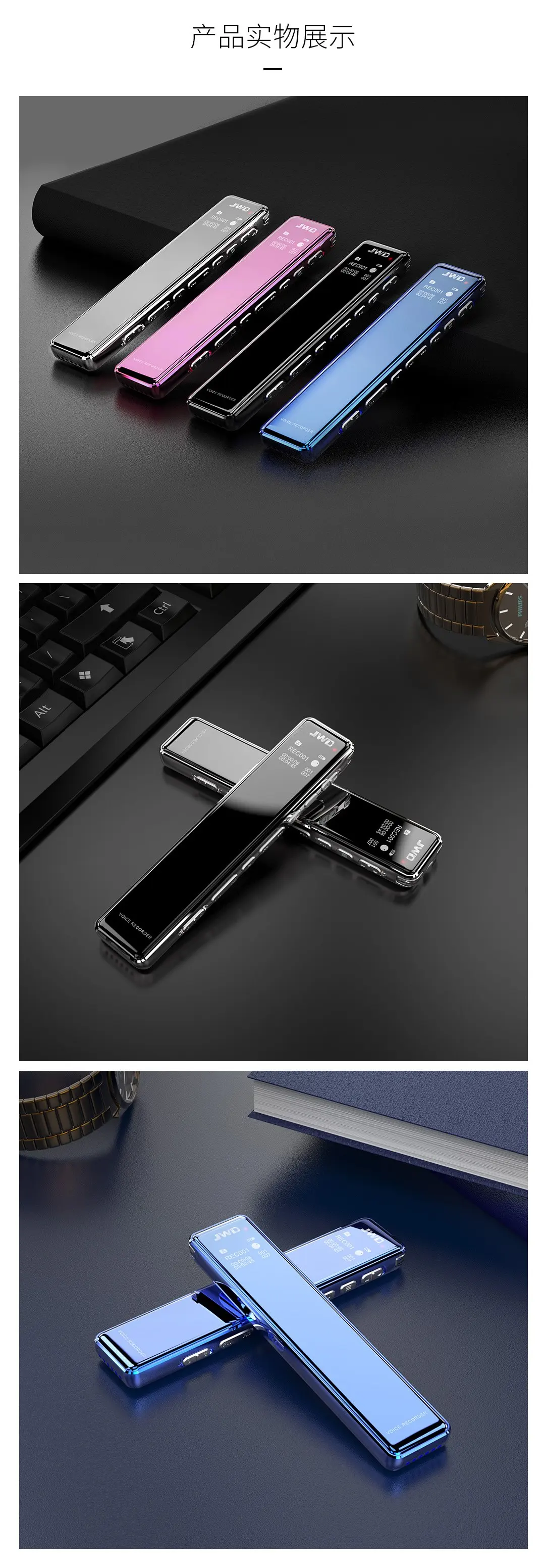 2.5D全鏡面顯屏,高品質(zhì)麥克風(fēng),支持TF卡取換,人性化按鍵設(shè)計,智能數(shù)字降噪